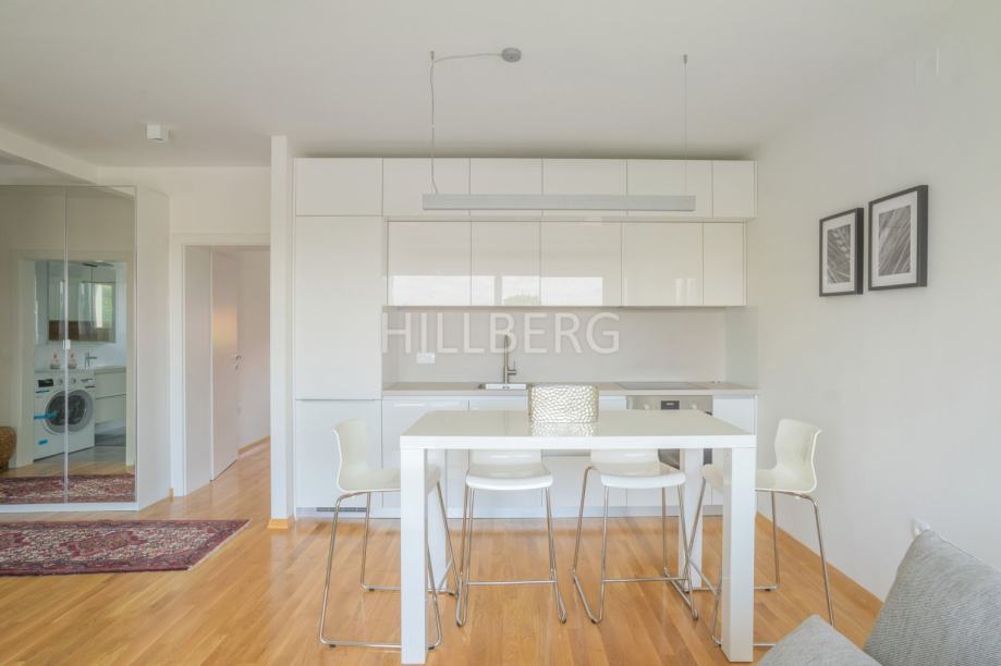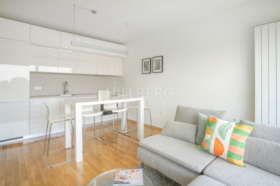 Sastoji se od ulaznog hodnika, dnevnog boravka s kuhinjom i blagovaonicom (izlaz na balkon, panoramski pogled, jug), 2 spavaće sobe (sjever) i kupaonice s tušem.