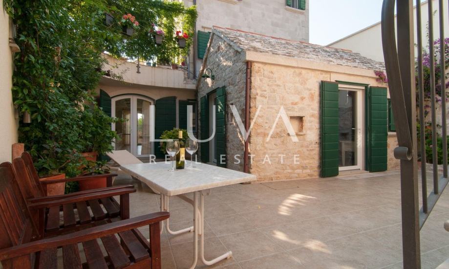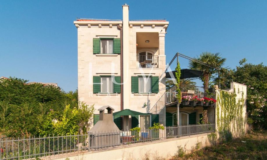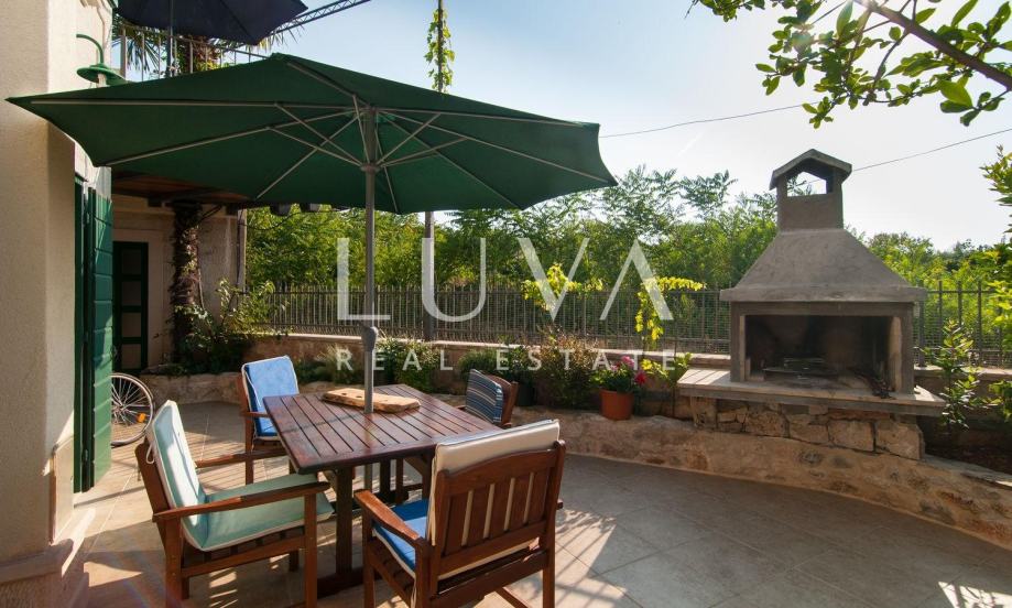 Na prodaju je elegantna i moderno uređena kuća s bazenom, smještena u malom i tihom mjestu Mirca na otoku Braču. Udaljena svega nekoliko minuta hoda od mora, ova vila nudi savršen spoj privatnosti, udobnosti i mediteranskog ugođaja. Građena 2011. godine, kuća se prostire na tri etaže ukupne površine 230 m², dok je površina cijelog posjeda 250 m².