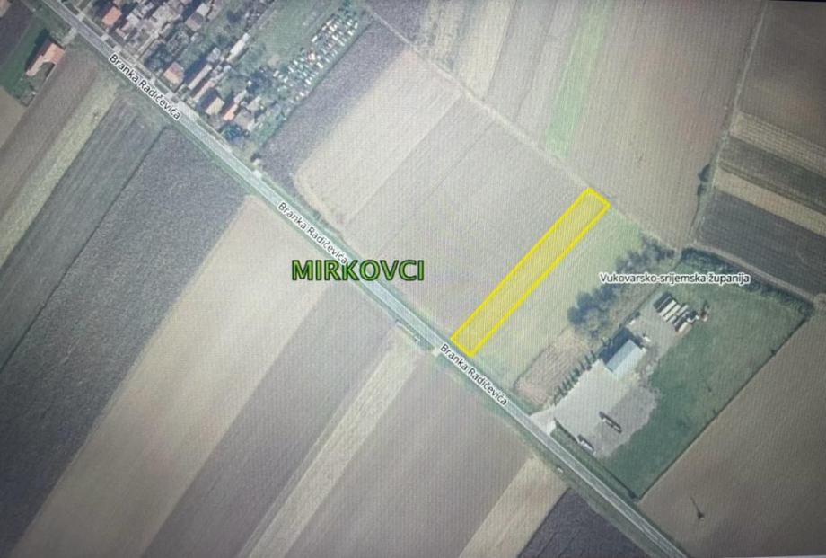Zemljište površine 2537 m2 . Nalazi se u Mirkovcima na glavnoj prometnici u smjeru Tovarnika.