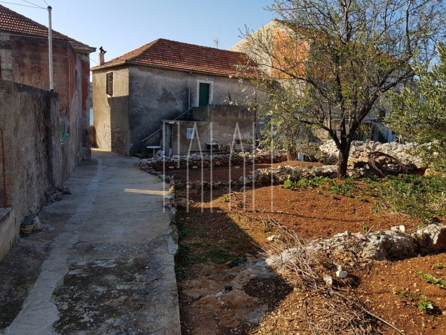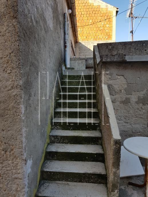 Prvi red do mora, nalazi se kuća s dva stana i vanjskim stubištem, pogodna za renovaciju.