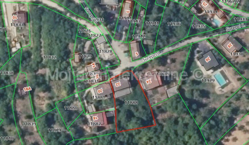 Prodaje se građevinsko zemljište. Na zemljištu je bila kuća koja je srušena. Za kuću je bila ishođena Uporabna dozvola za građevine izgrađene prije 15. veljače 1968.g. Korisna površina kuće bila je KP=200.34m2, građevinska bruto površina iznosila je GBP=248.92m2, građevinska bruto površina iznosila je GBV=682.91m3. Površina parcele iznosi 1126m2.