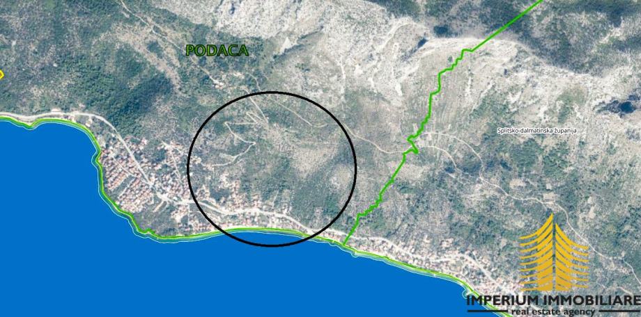 Zemljište se nalazi odmah iznad magistrale Split-Dubrovnik, 100m od mora, lagani pad, idealno za gradnju vila, apartmana, kuća - otvoreni pogled na Pelješac i otvoreno more.