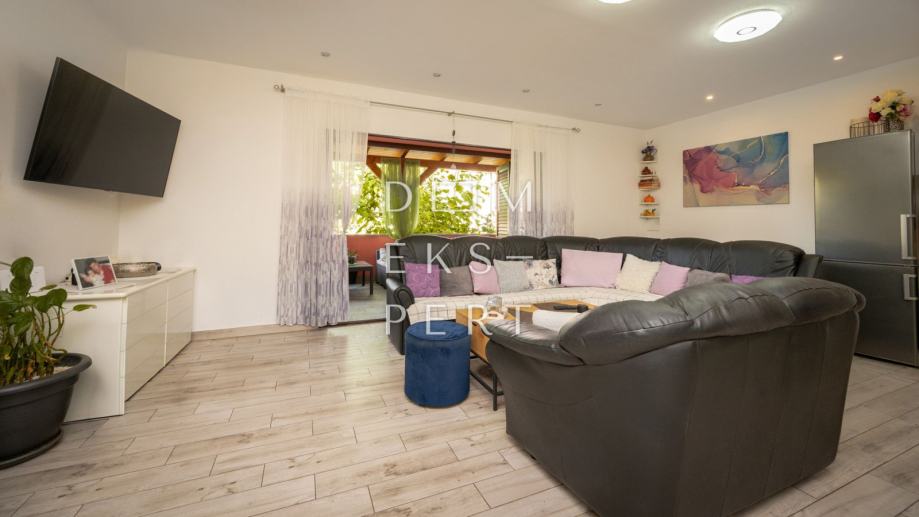 Lokacija: Osnovna škola i vrtić udaljeni su svega 800 metara. Do autobusne stanice je 500 metara, kao i do trgovine. Školski autobus prolazi kroz ulicu, na udaljenosti od 5 minuta hoda. Centar Rijeke je na udaljenosti od približno 9 kilometara. Okruženje čine obiteljske kuće i manje stambene zgrade.