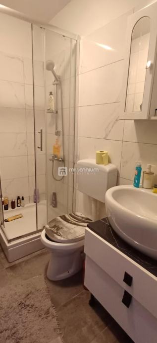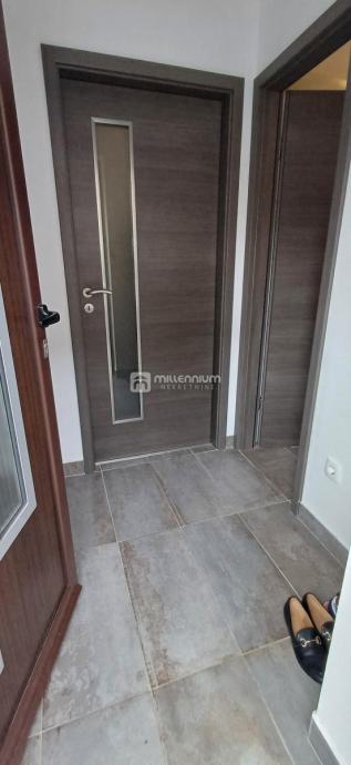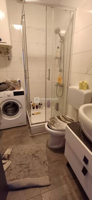 Stan od 37.88m2 je u naravi nešto veće kvadrature (43m2) i sastoji se od malog ulaznog hodnika, dnevnog boravka s kuhinjom, spavaće sobe i kupaonice.