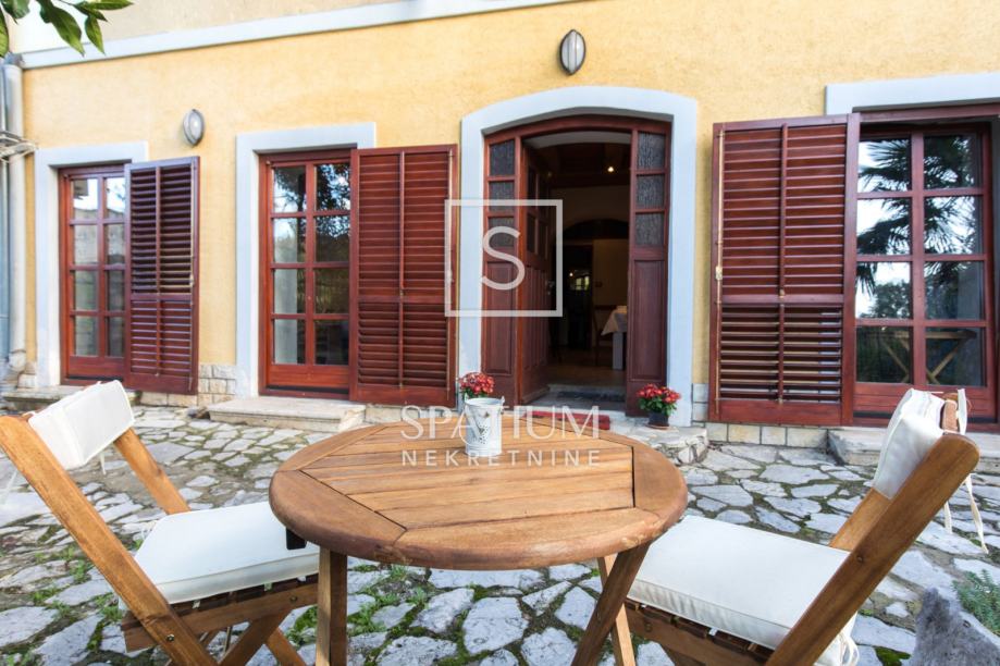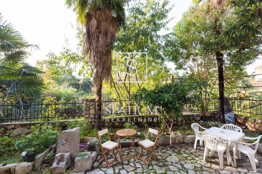 Iz dnevnog boravka se izlazi na prostranu ograđenu okućnicu s pogledom na zelenilo.