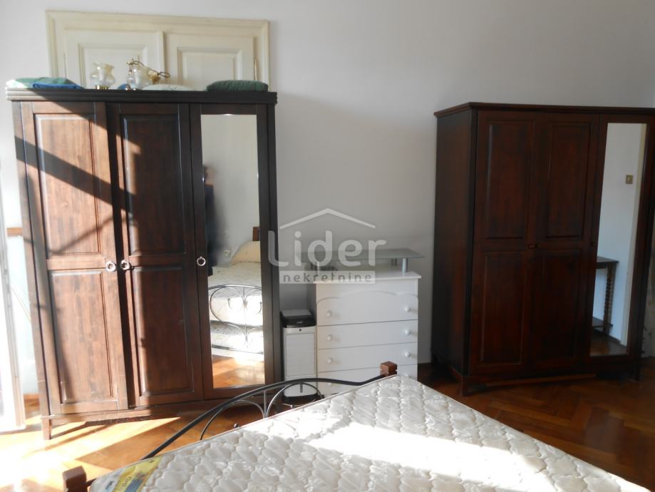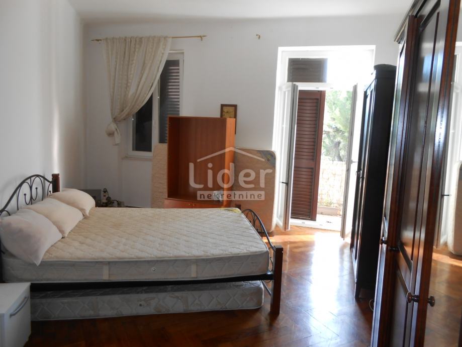 Stan se sastoji od dnevnog boravka s balkonom i kuhinje sjeverne orijentacije, dvije velike spavaće sobe, ostave, prostranog hodnika i kupaonice koja je adaptirana 2015. godine. Nedavno je postavljena i nova vanjska PVC stolarija, a dogovorena je i izrada novoga krova. Veća soba ima izlaz na balkon s pogledom na more.
