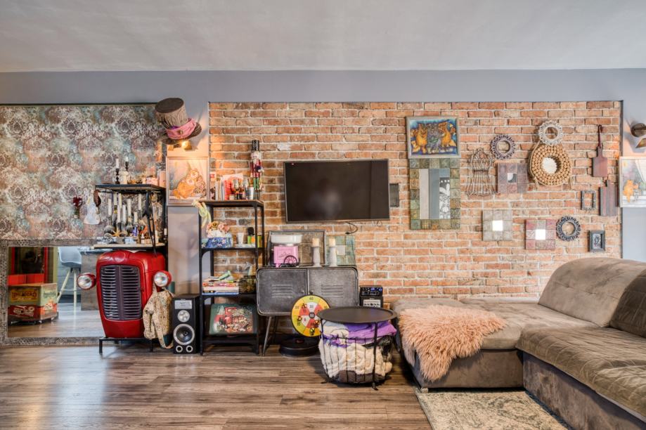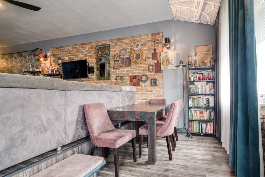 Interesantno je uređen u industrijskom stilu s elementima steampunk estetike. Unikatni ukrasi i reciklirani elementi prostoru daju snažan, autentičan i urbano-rustikalni karakter.