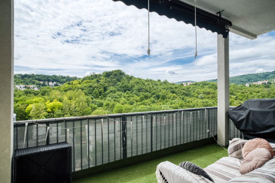 Prednost stana je i velika nenatkrivena terasa s koje se pruža prekrasan pogled prema Mlinovima, Šestinama i Medvedgradu.