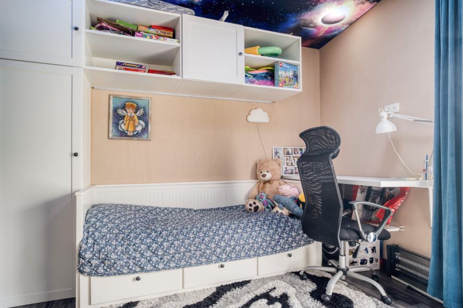 Stan je smješten na 3. katu, prostran je i prozračan s trostranom orijentacijom zapad-sjever-jug. Ima površinu od 112,31m2 se sastoji se od dnevnog boravka s kuhinjom, predsoblja, tri sobe, kupaonice s tušem, predsoblja i toaleta.