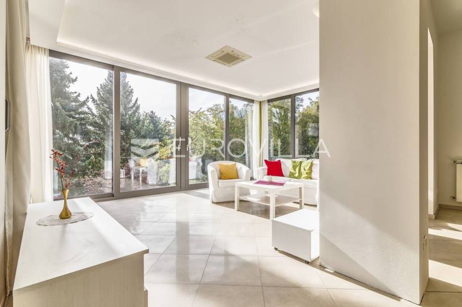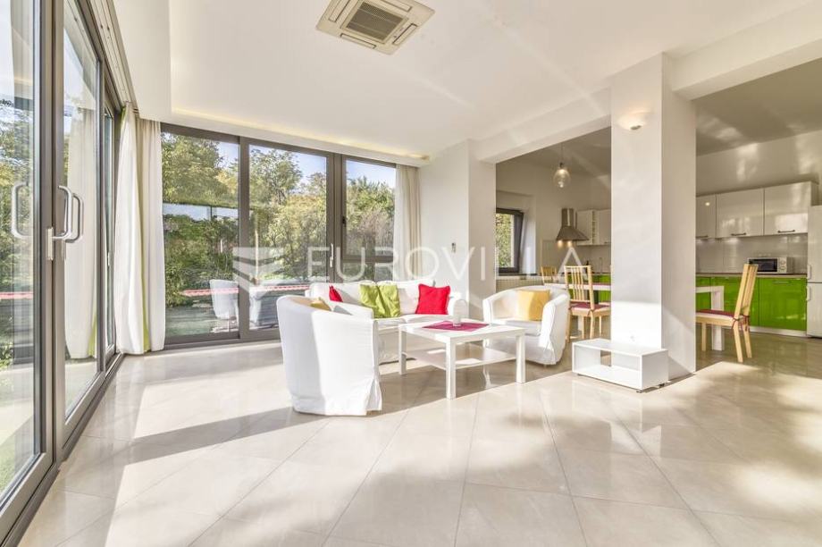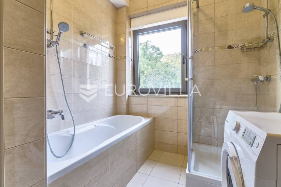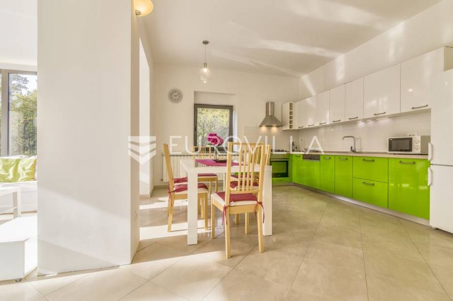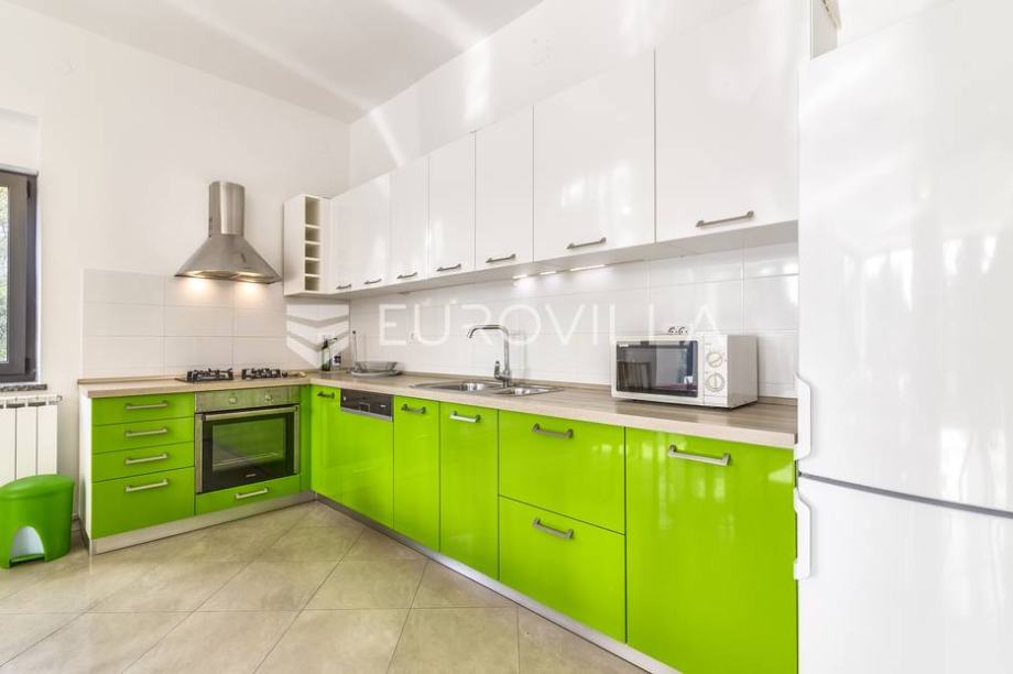 Mlinovi, beautiful four bedroom apartment 113m2 with garden.It consists of an entrance hall, 3 bedrooms, guest toilet, bathroom (2 sinks, shower and bathtub, toilet, bidet), pantry, kitchen with dining area, and a spacious living room overlooking the beautiful garden.The apartment is air...