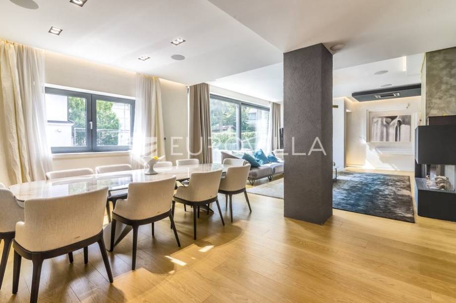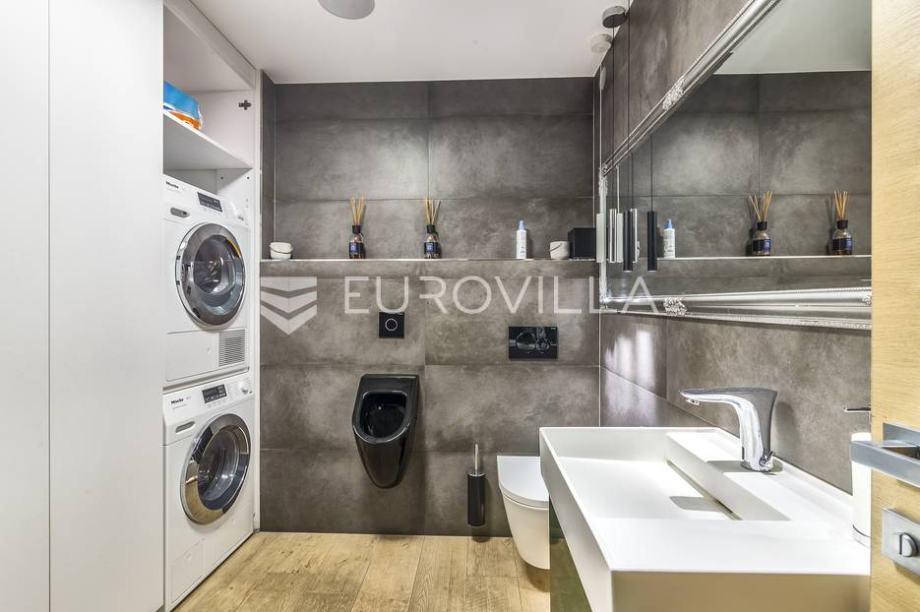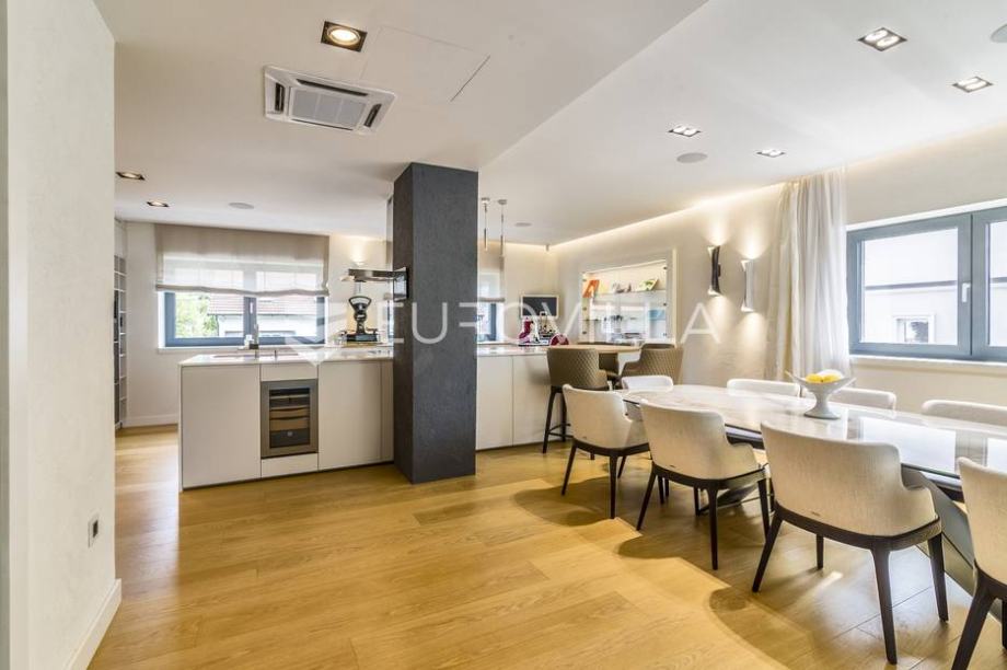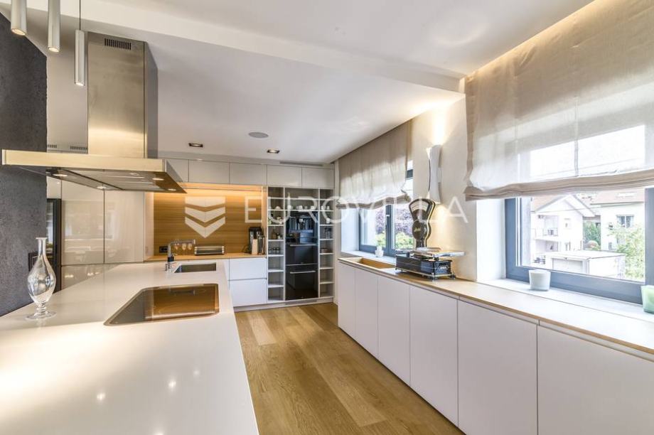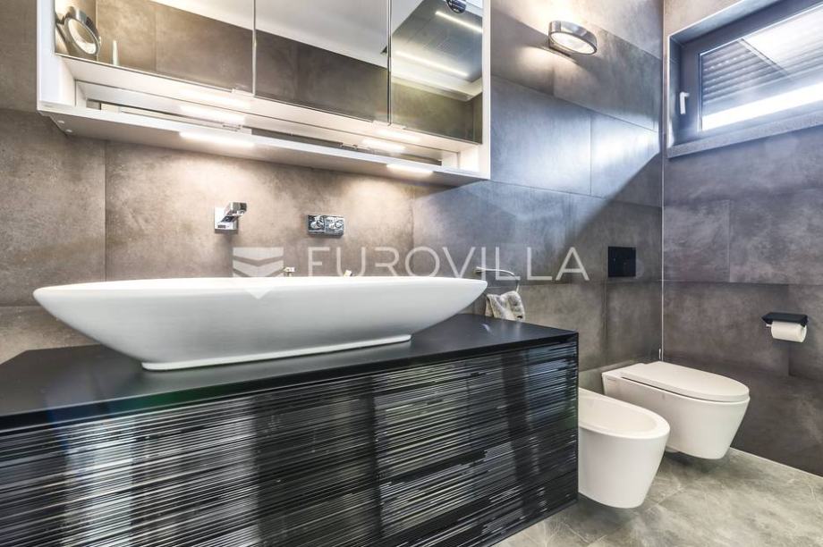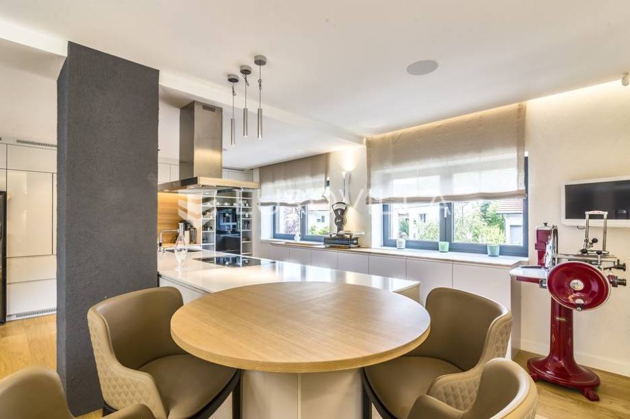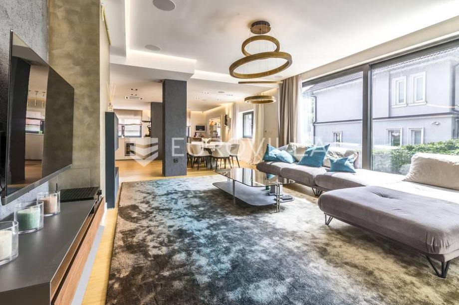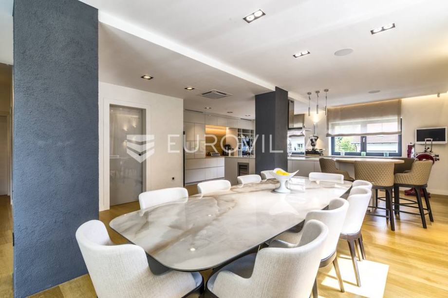 Mlinovi, luxury modern villa with a closed area of 500 m2 with a beautiful yard and garden of 430 m2. Located at the very beginning of Mlinovi street, near the park, school, not far from the city center. Built on three floors. Basement: professional kitchen, entertainment area, sauna, wine cellar,...