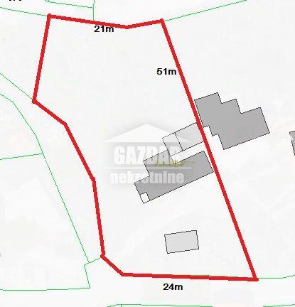 ŠESTINE - građevinska parcela površine 1166m2, sa kućom i dvije zgrade tlocrtnih površina 124m2 izgrađenih prije 1968. godine.