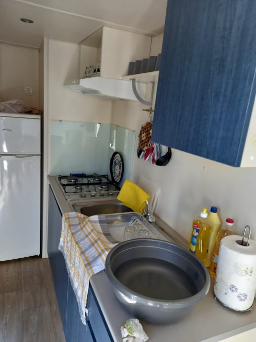 2 spavaće sobe sa ležajevima, toalet i kupatilo sa tušem, kuhinja trpezarija sa kutnom garniturom