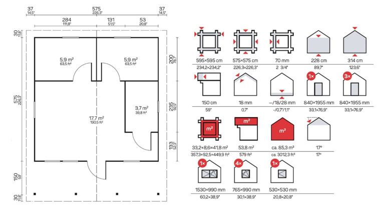 • Dimenzije: 5,75 x 5,75 m