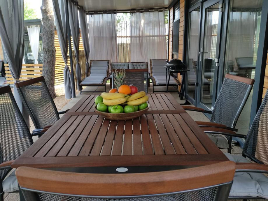 Mobilna kućica 1.red do mora, 10m od pješčane plaže. Kućica se nalazi u kampu Dalmacija Privlaka. Objekt posluje pod brandom Dalmatino Pleasure. Unutarnji prostor 24m2 + 24m2 terasa.