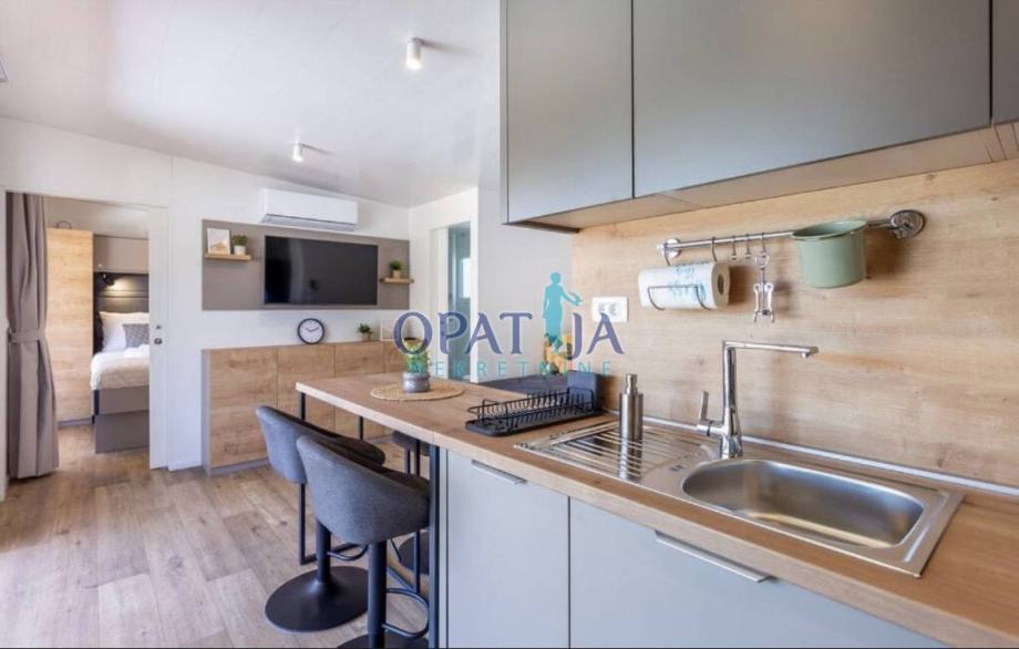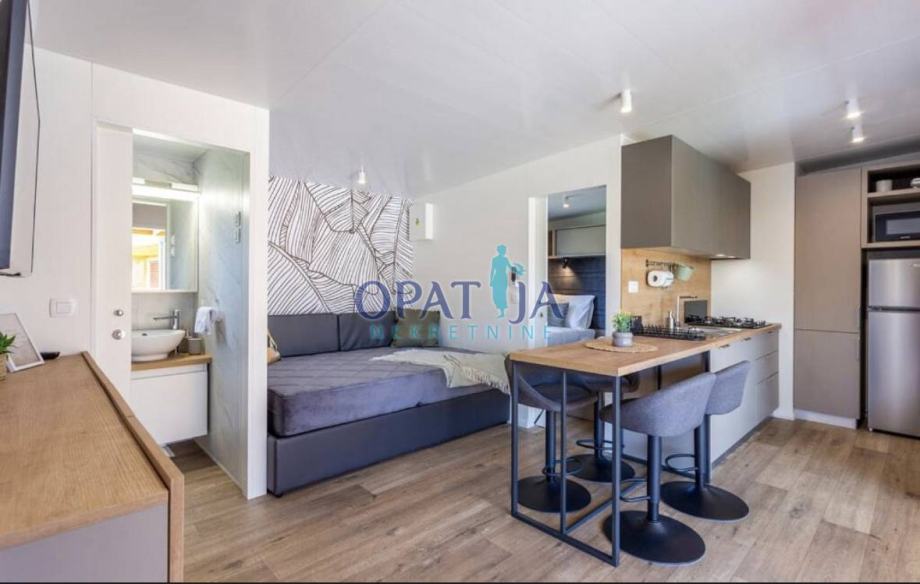 Vrhunski uređena mobilna kućica za 4-6 osoba. Idealna za investiciju za cjelogodišnji turizam. Prodaje se kompletno uređena.