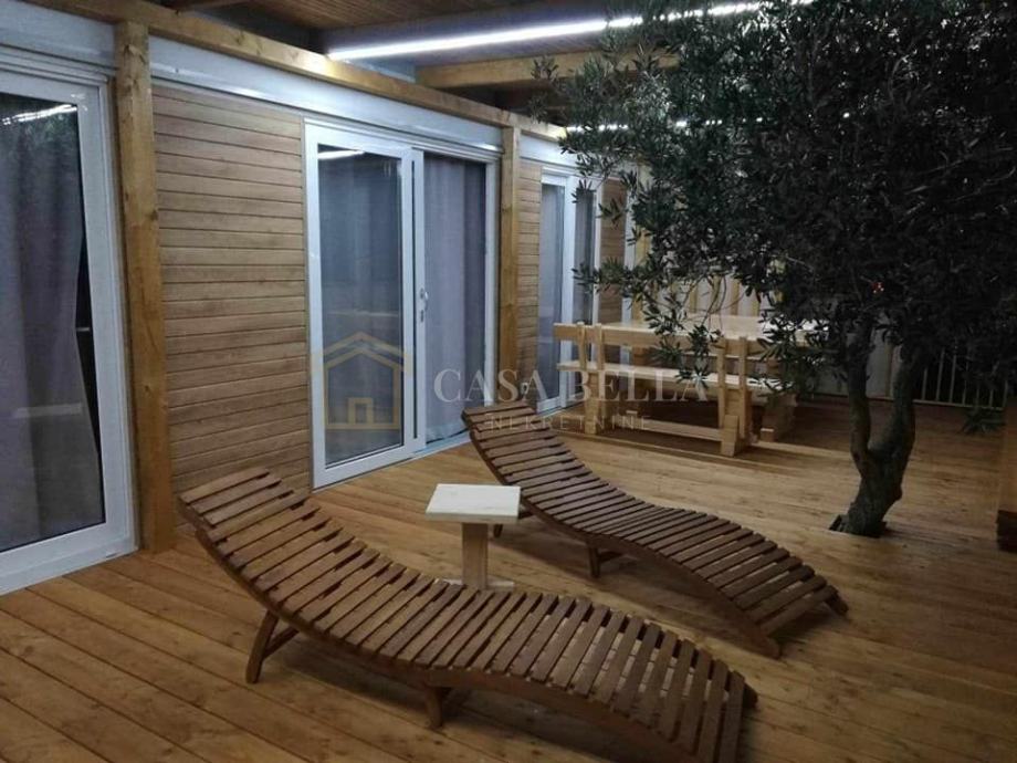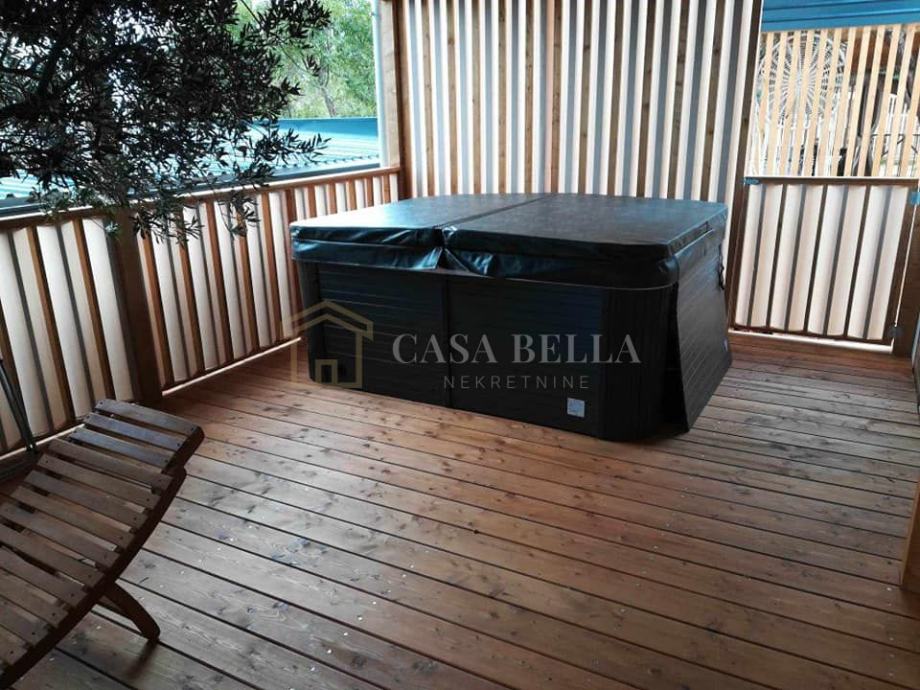 Kućica je površine 33m2 te se sastoji od dvije spavaće sobe, kupaonice, blagavaonice i kuhinje. Kućica ima terasu s jacuzzijem.