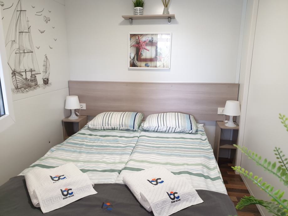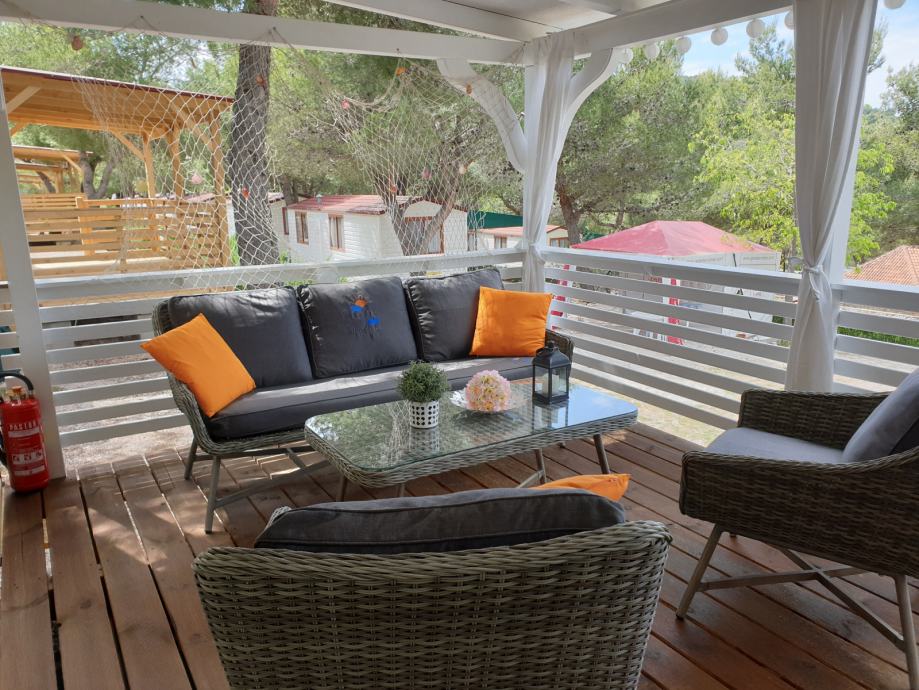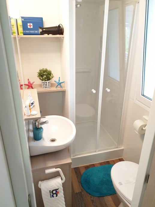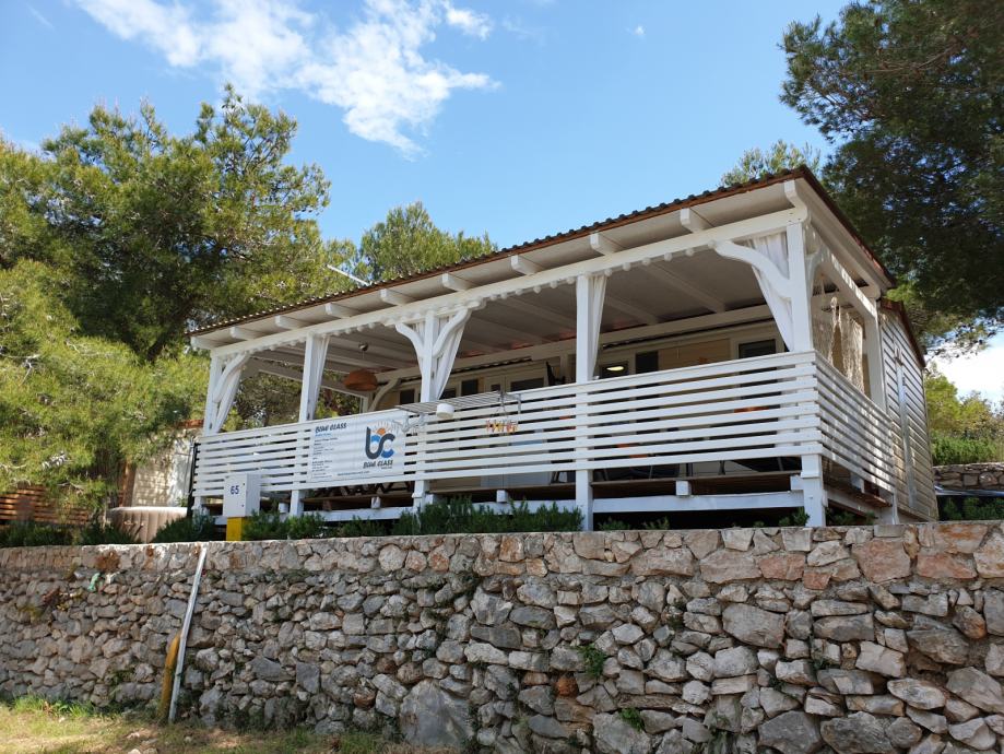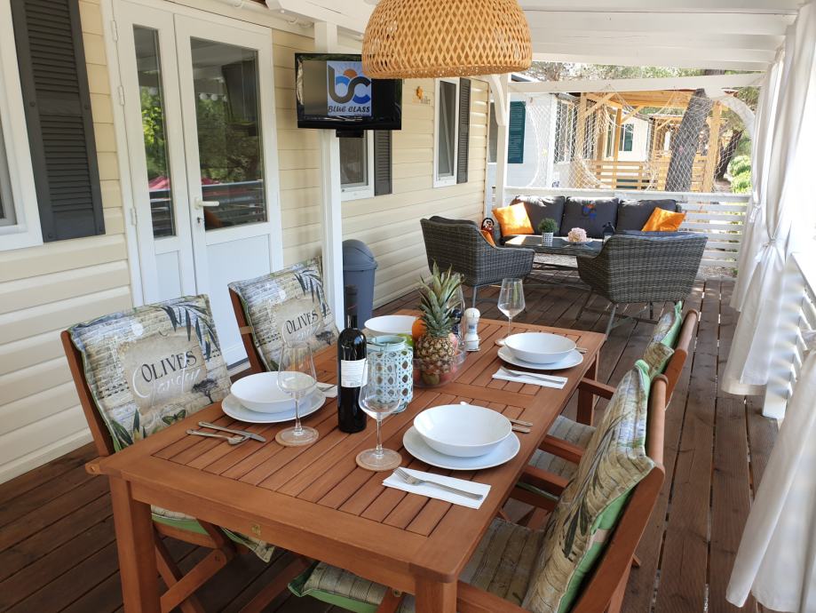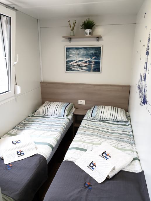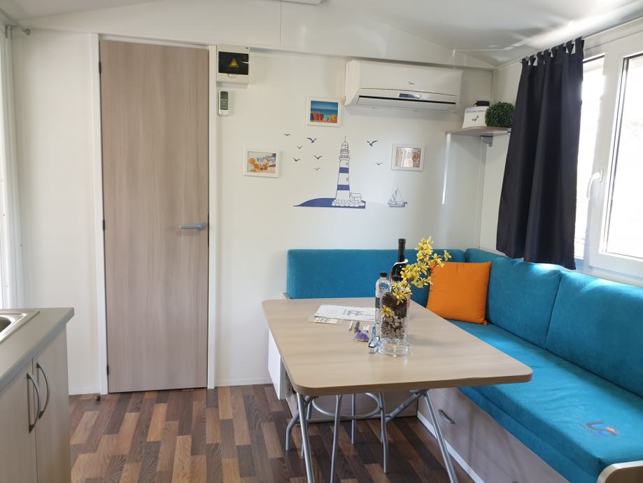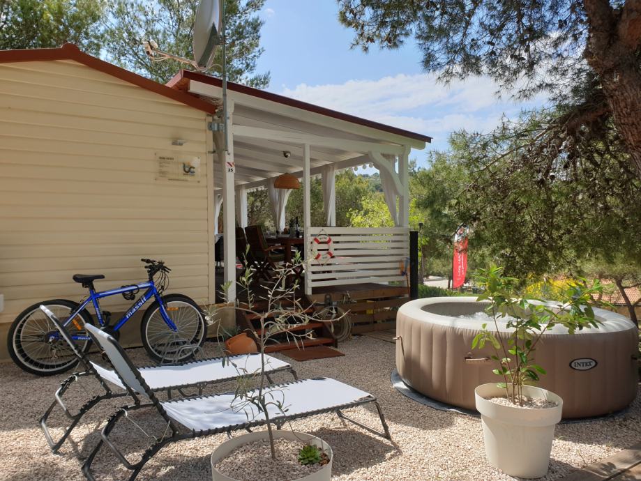 Lokacija kućice je na iznimno dobrom mjestu u kampu, širok pogled s terase, blizina mora, blizina recepcije, dućana, sportskih terena i dječjeg igrališta.