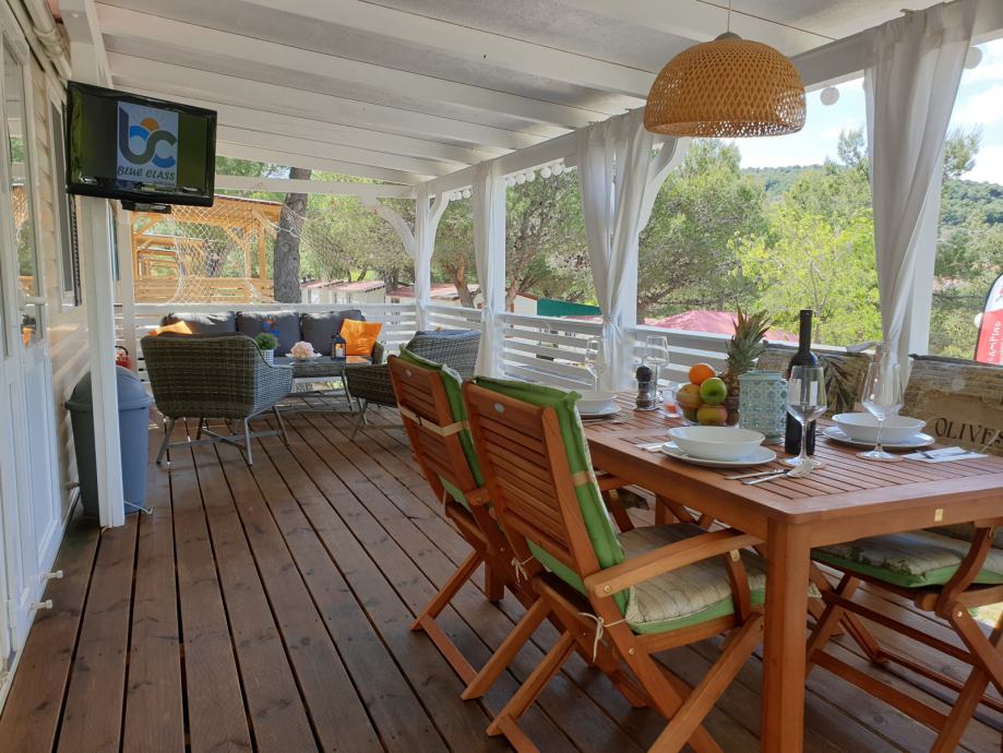 Otok Murter - Jezera - kamp Jezera Village - PRODAJEMO mobilnu kućicu Adria S Line, Sun Roller Krk, 7,80 x 3m i terasa 7,80 x 4m u izvrsnom stanju, poptuno opremljena, odmah spremna za korištenje ili iznamljivanje, bez ulaganja.