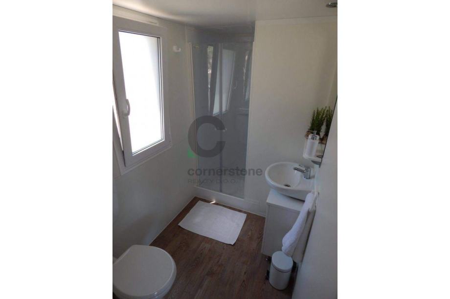 Kućica s sastoji od kuhinje, blagavaonice sa dnevnim boravkom (kauč/krevet na razvlačenje za dvije osobe), 2 spavaće sobe (1 krevet sa madracom: 200x160 + 2 ležaja sa madracima : 200x80), 1 kupaonice sa wc-om i tušem, te velike prostrane natkrivene terase po cijeloj dužini kućice.