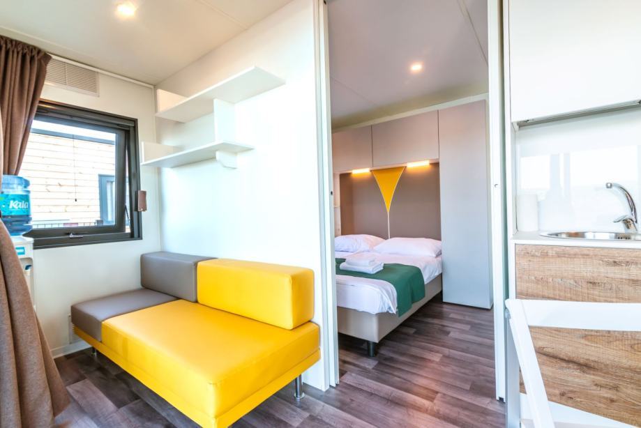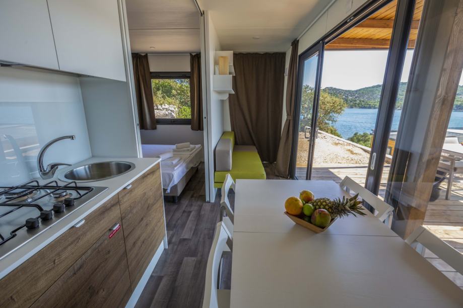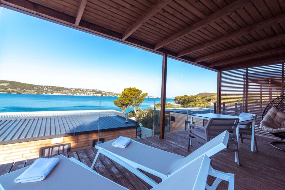 Visokokvalitetna oprema – kućice su opremljene vrhunskim namještajem, uključujući vanjski i unutarnji set za sjedenje i ležaljke.