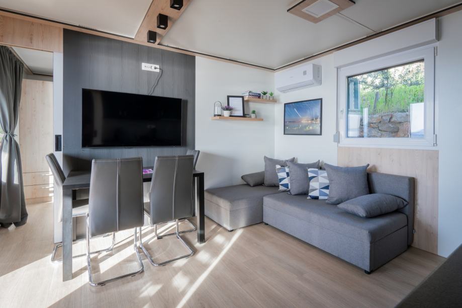 Na terasi se nalaze stol sa stolicama, ležaljka, stolić s foteljama i električni roštilj (sve uključeno u cijenu). Cijena paušala koji se plaća kampu je 8.600€ (plus PDV) godišnje i paušal je plaćen do 31.12.2025.