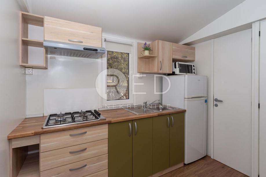 Mobilna kućica se nalazi samo 80 metara od plaže, okružena borovom šumom koja pruža mir i ugodnu atmosferu za opuštanje. Svi potrebni sadržaji nalaze se u neposrednoj blizini.