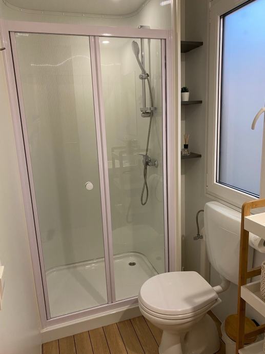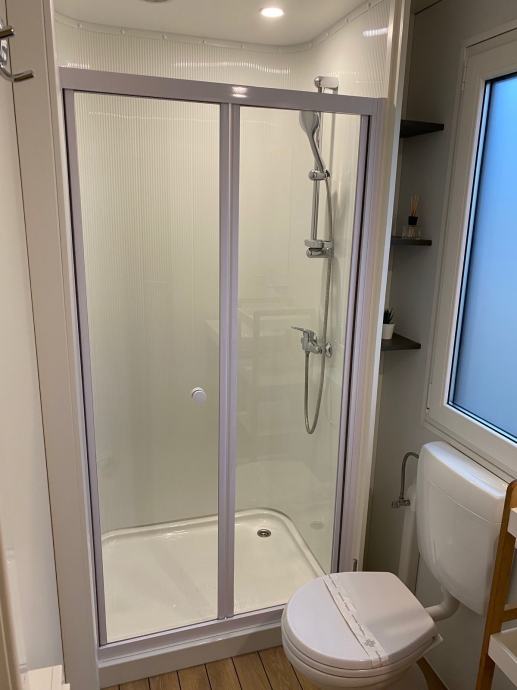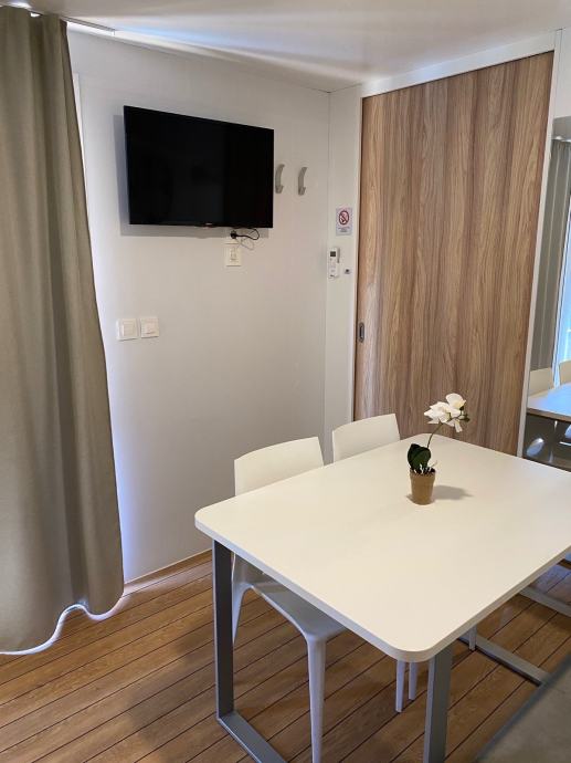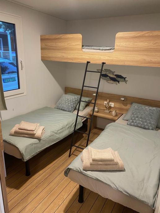 Mobilna kućica je u vrhunskom stanju sa odličnom popunjenošću u sezoni kao i odličnim recenzijama gostiju.Smještena je na lijepoj lokaciji unutar kampa( parcela 794),a udaljenost do mora je cca 200m.