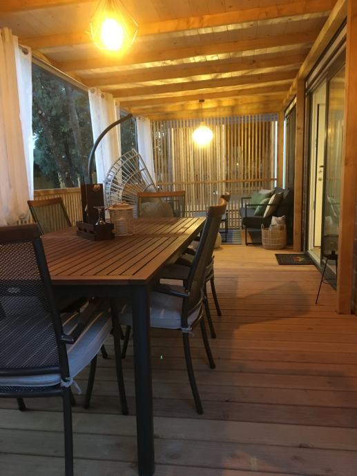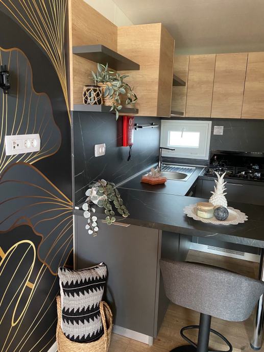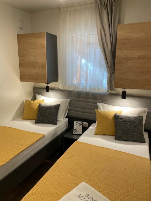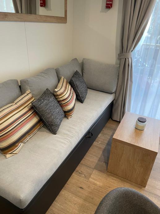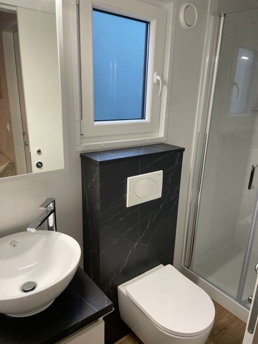 Prodaje se mobilna kućica Nord, smještena u kampu Soline, Biograd na moru, vrlo atraktivna lokacija, 200 metara od plaže Soline. Kućica je postavljena 2024. godine. Kućica površine 32 m2 i natkrivena terasa 24 m2. Dvije sobe, dvije kupaonice, kuhinja, dnevni boravak. Potpuno opremljena i spremna za iznajmljivanje. Cijena nije fiksna.