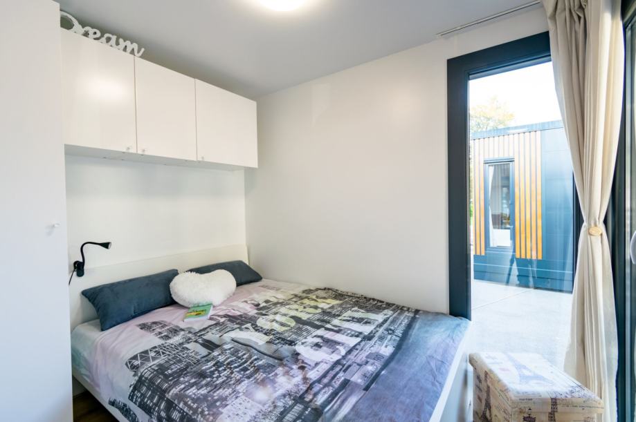 Kućica sadrži jednu spavaću sobu, kupaonicu, kuhinju i dnevni boravak.
