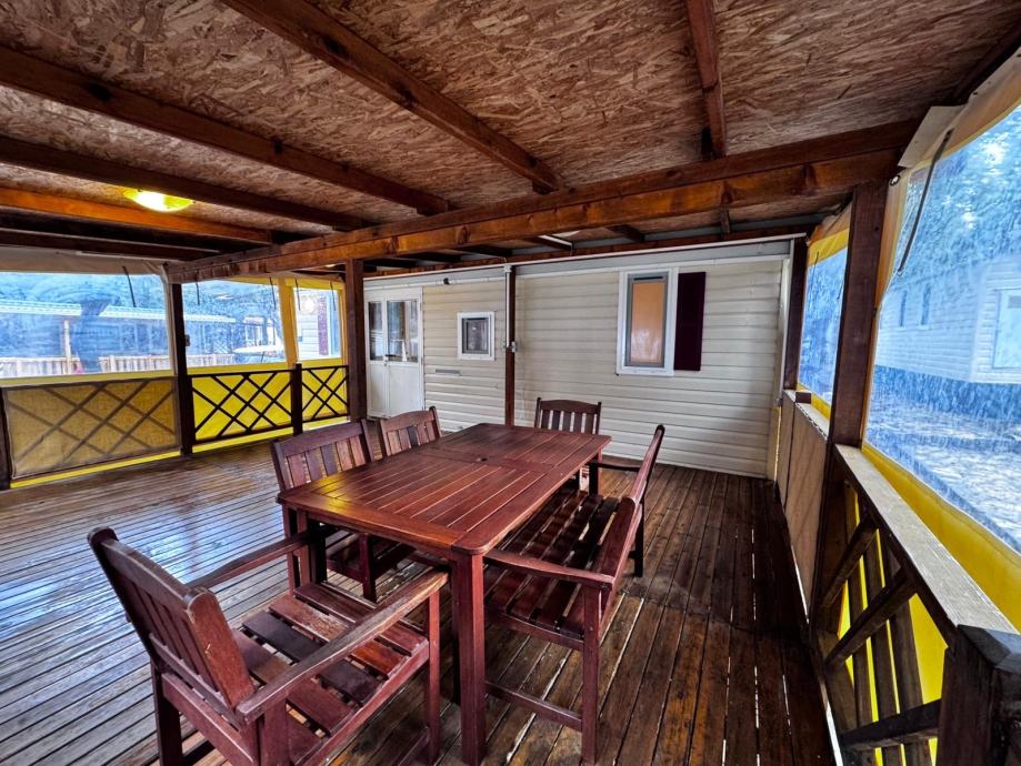 Prodaje se mobilna kućica iz 2005-e godine, proizvođač Shelbox, dimenzija 8x3 metra sa dvije sobe, kupatilom te kuhinjom s dnevnim boravkom. Kućica održavana i korištena isključivo za privatne potrebe, nikad nije bila u renti. Kućica se nalazi u Novalji na otoku Pagu te je spremna za transport. Kućica se prodaje bez parcele u kampu i bez terase.