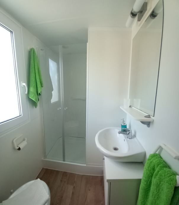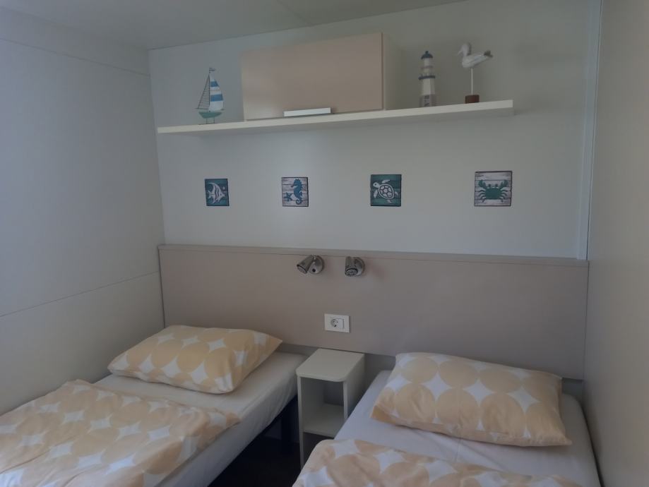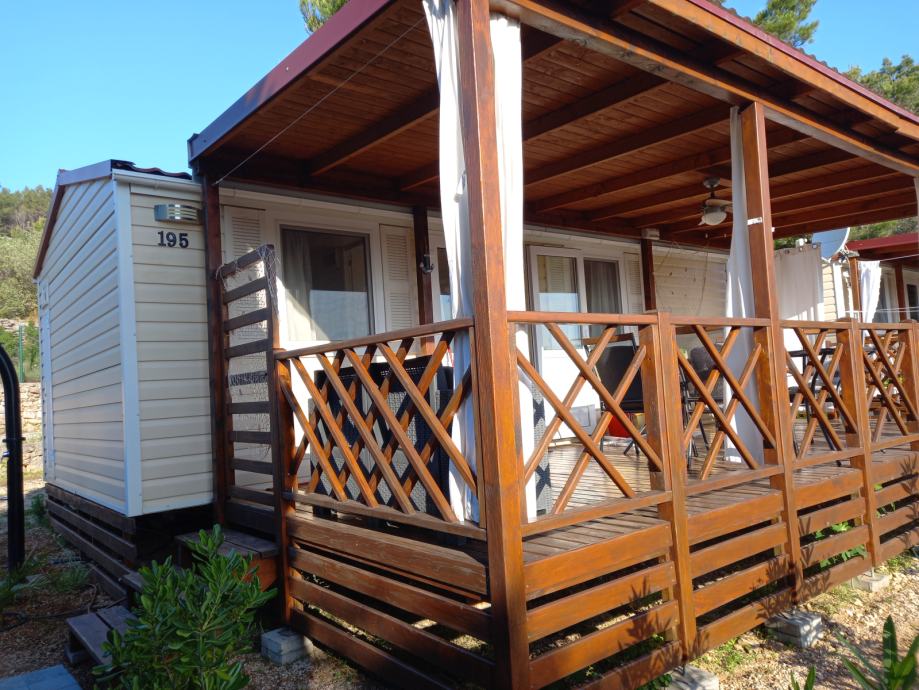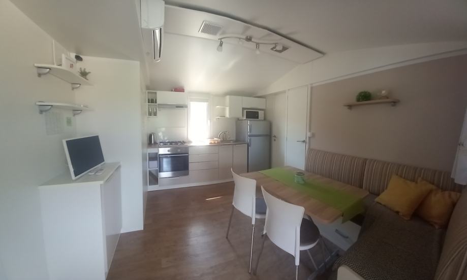 Prodaje se isključivo samo kućica sa terasom bez parcele. Kućica ima dvije spavaće sobe sa dva kupatila, dnevni boravak s opremljenom kuhinjom i kutnom garniturom na razvlačenje te je pogodna za smještaj 6 osoba. Na svim su prozorima ugrađeni komarnici.
