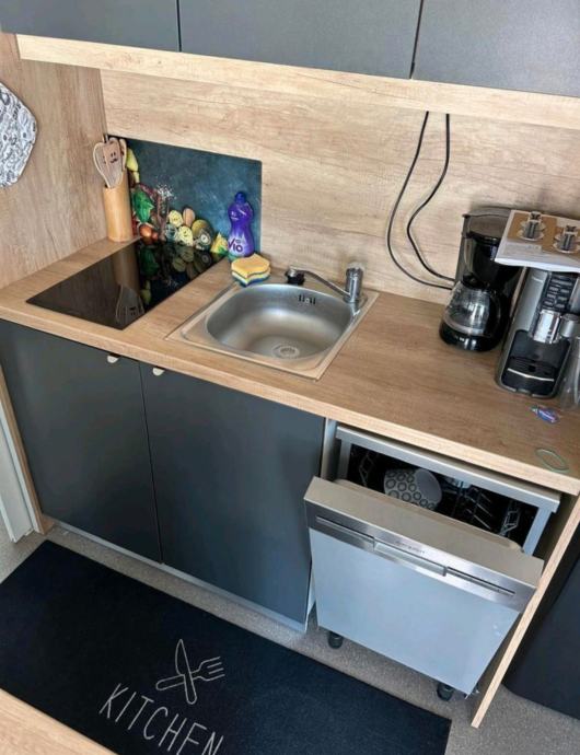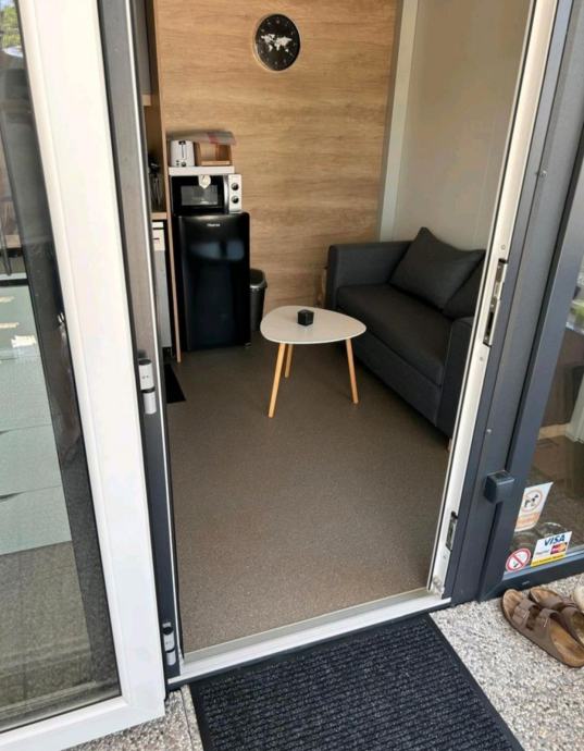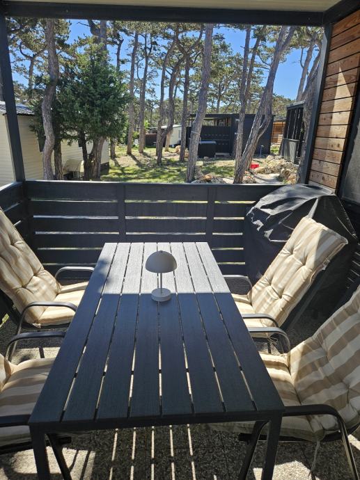 Površina je 24m2, te natkrivena terasa sa 18m2. Svi prozori su opremljeni komarnicima. Na terasi je veliki stol za blagovanje.