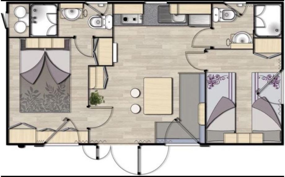 Potpuna oprema unutra uključujući klimu, štednjak, frižider, madrace, bojler.