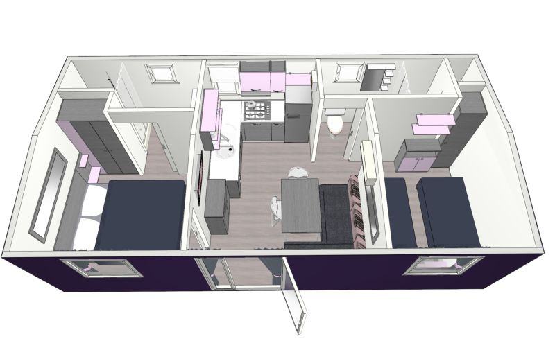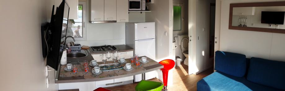 Kućica je opremljena sa bračnom sobom, spavaćom sa dva kreveta, dvije kupaone sa tuš kabinom i WC školjkom, klima uređajem, Lcd, natkrivenom terasom, roštiljem, u potpunosti opremljenom kuhinjom / blagavaonicom.