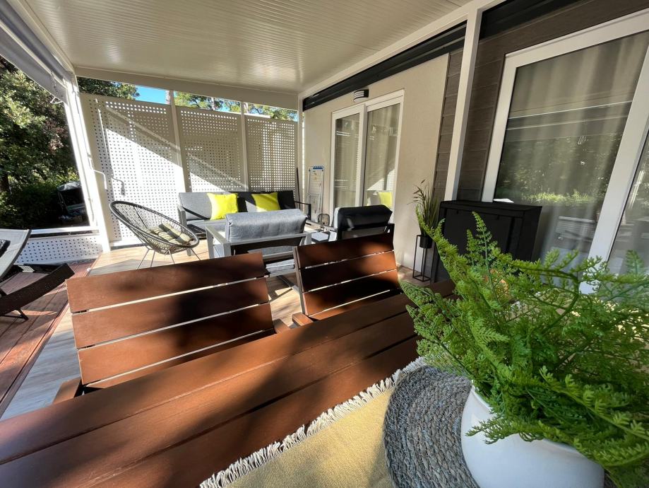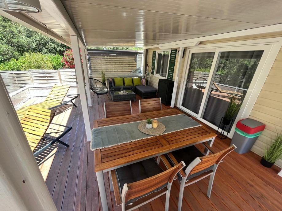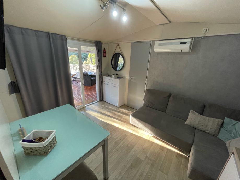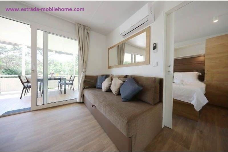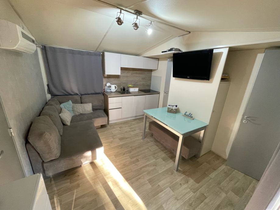 The price includes all equipment in the mobile home (new air conditioner, TV, fully equipped kitchen (fridge, cutlery, crockery, microwave, toaster, kettle, coffee machine), bedding for all beds (pillows, blankets and sheets while are towels and slippers with a printed logo - all for 3 guest changes).