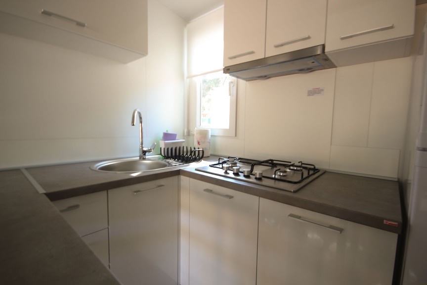 • Kuhinja s elementima, pločom za kuhanje, sudoperom i hladnjakom