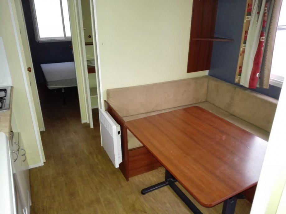 Mobilna kuća je potpuno namještena, ormari, komode, kreveti, madraci, jastuci, zastori na namatanje, (tuš- umivaonik- WC ) i potpune modularne kuhinje, stol sa trosjedom rasklopivim u krevet, ( hladnjak/zamrzivač, površina za kuhanje, mnogo njih s pećnicom/roštiljem), bojler za kupaonicu kako na metan tako i na prirodni plin.