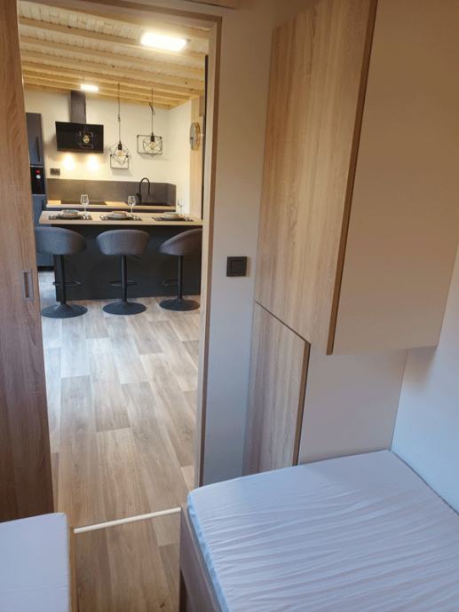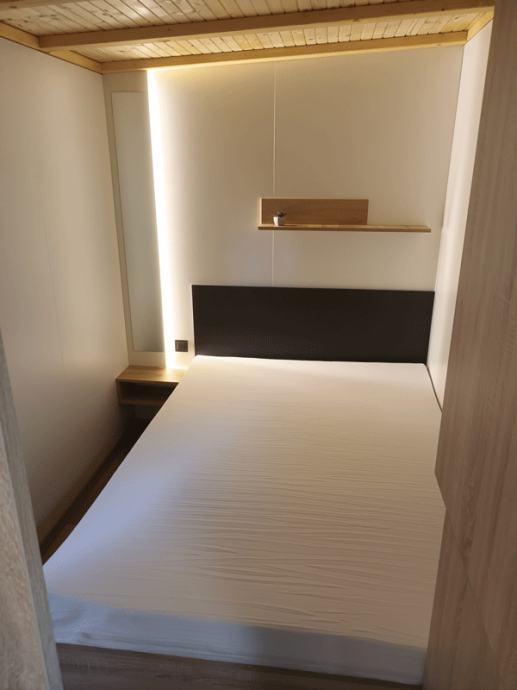 Spavaća soba 1 - bračni krevet 140x200 cm + podnice i madrac, noćna polica, ormar za odjeću, ormar za odlaganje stvari.