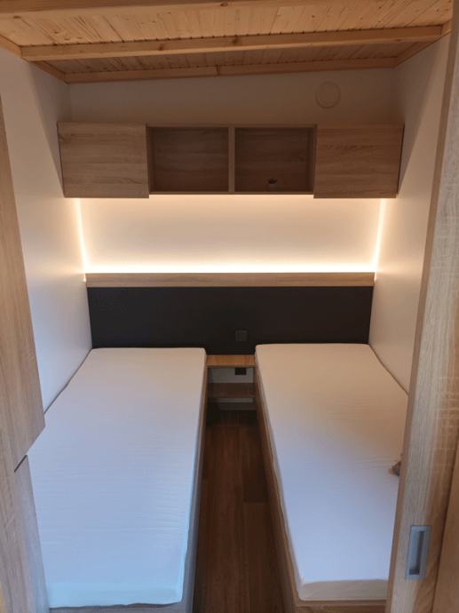 Spavaća soba 2 – 2 x krevet 80x200 cm + podnice i madrac, noćni ormarića, ormar za odjeću.
