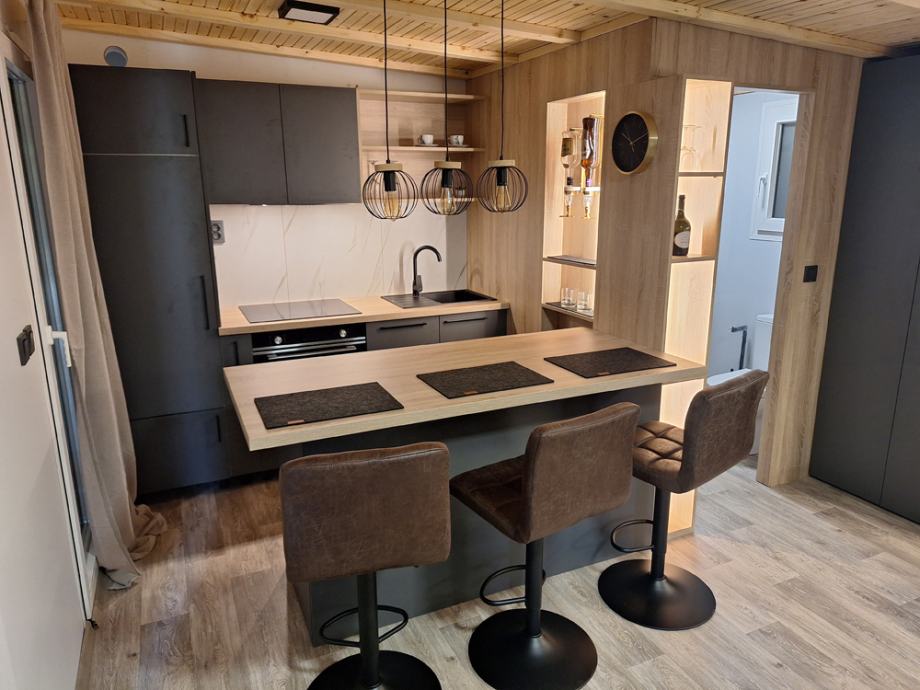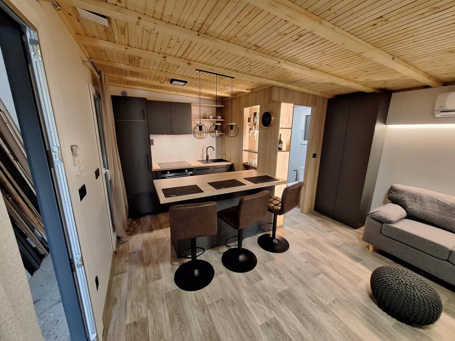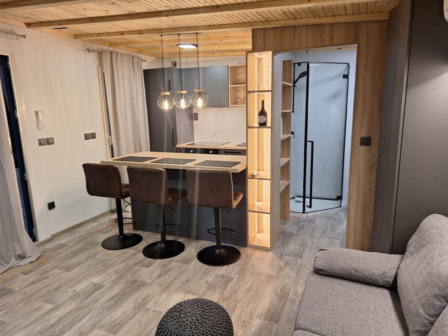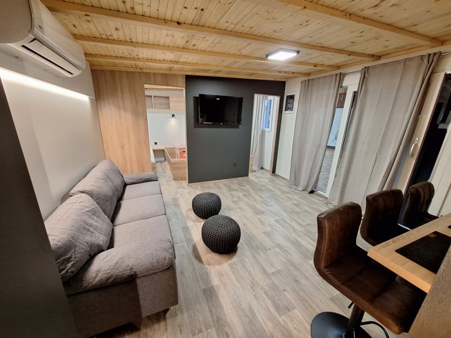 Dnevni boravak - 3 barske stolice, polica, smart televizor 43 incha - lcd, klima uređaj, trosjed, 2x tabure, klub stolić