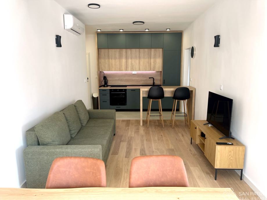 Apartman se ističe vrhunskim graditeljskim standardima i luksuznim detaljima: dvije klime, električne rolete, walk-in tuš, podžbukni tuš, keramika velikog formata 120x40 cm, podno grijanje, bambus parket, francuski prozori, PVC prozori i vrata u antracit boji. Sve ove karakteristike osiguravaju izuzetnu kvalitetu i udobnost stanovanja. Apartman je nekorišten i prodaje se potpuno namješten.