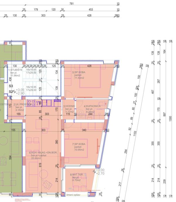 Stan S2 - 1. kat - stambena površina 53,19 m2 (2 spavaće sobe + 1 kupaonica) + natkrivena terasa (4,70 m2) + vanjsko parking mjesto; neto obračunska površina 57,17 m2 = 255.000 EUR