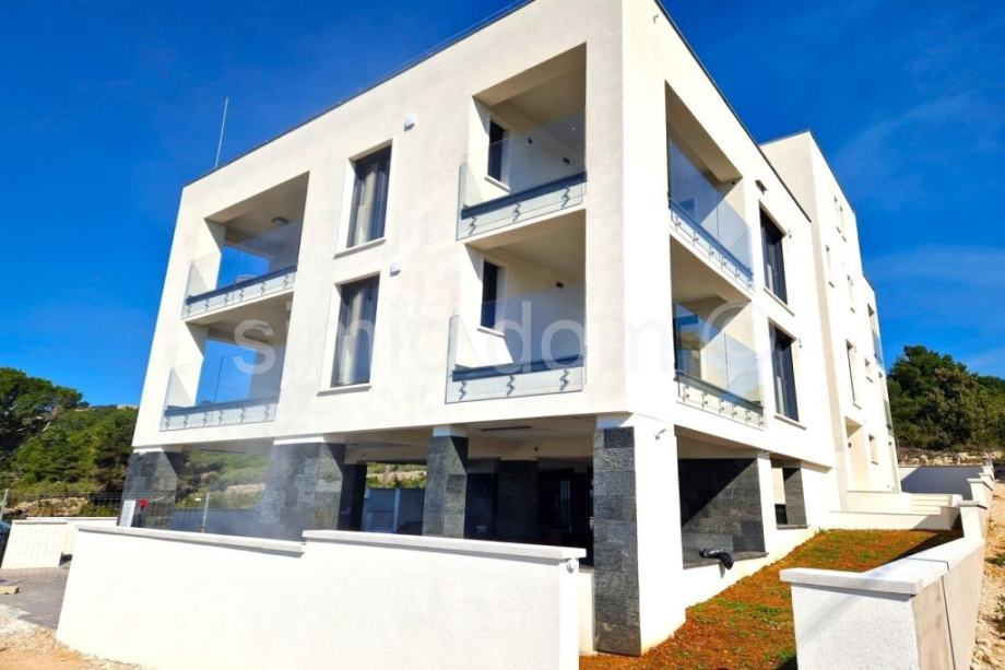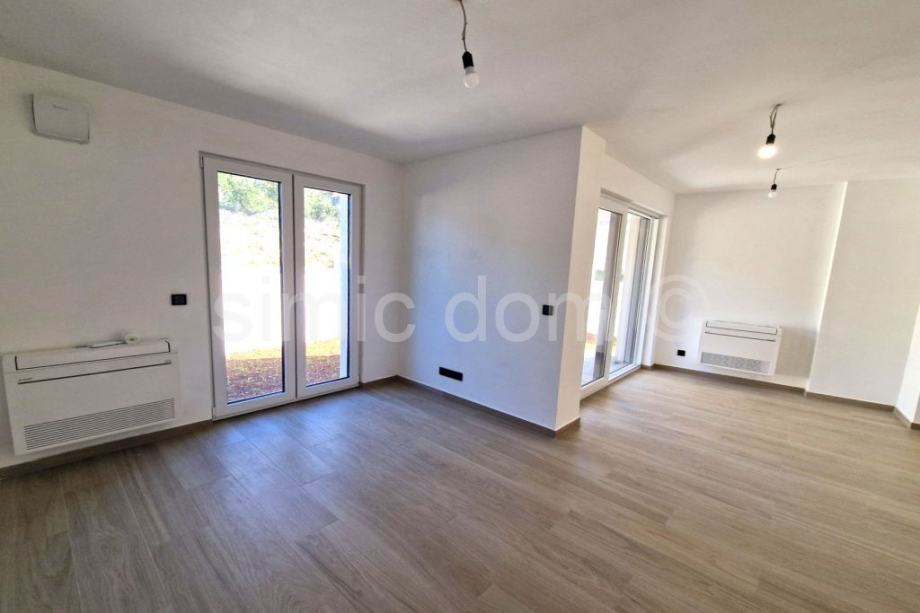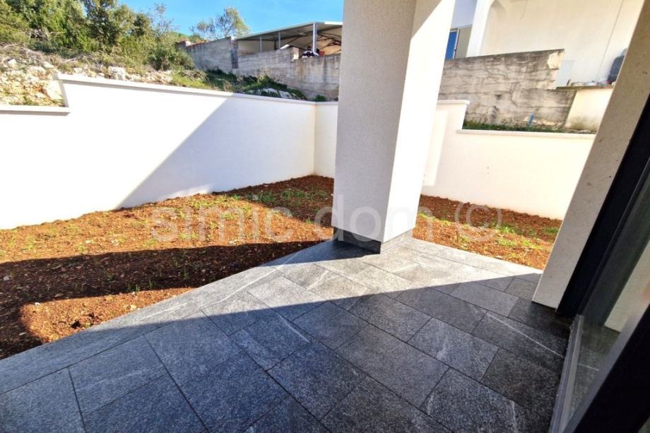 Na prodaju su predivni, moderni apartmani u novogradnji u Jezerima na Murteru. Smješteni su u izrazito mirnoj ulici, a opet unutar 500m od svih sadržaja, poput dućana, kafića i plaže. Zgradu gradi renomirani investitor s dugogodišnjim iskustvom u građenju izrazito kvalitetnih i luksuznih stanova s vrhunskim materijalima. Apartman oznake S2 dvoetažan je te ima ukupnu unutarnju površinu od 81,43 m2 uz dodatak još dvije terase ukupne podne površine 9,61 m2, vrt od 51 m2 te parkirno mjesto od 14 m2, sve uključeno u cijenu. S uračunatim koeficijentima apartman ima ukupnu neto korisnu površinu od 102 m2. U prizemlju apartmana nalazi se hodnik, dnevni boravak otvorenog koncepta s blagovaonicom i kuhinjom, kupaonica, malo spremište, natkrivena terasa te vrt od 52 m2. Prvi kat se sastoji od dvije spavaće sobe, dvije kupaonice te natkrivene terase. Svaki apartman ima svoje garažno mjesto i spremište u suterenu zgrade. Cijela zgrada je građena s iznimno kvalitetnim materijalima, koji garantiraju ugodno stanovanje, vrhunsku zvučnu i toplinsku izolaciju. Svi prozori su ostakljeni BluEvolution prozorima, klizne stijene s niskim pragom, apartmani su opremljeni pametnim sustavom Gira s kojim se upravlja grijanjem, hlađenjem, roletama, kao i protuprovalnim alarmom. Apartmani su opremljeni klima uređajima u svim prostorijama, imaju rekuperatore za svjež zrak, podno grijanje u kupaonicama u kojima su ugrađene sanitarije Geberit i omekšivač vode koji čuva instalacije i aparate kućanstva. Podne obloge su keramičke, u spavaćim sobama je parket. Ulazna vrata u svaki apartman su protupožarna. Kupci su oslobođeni poreza na promet nekretnina. Ova nekretnina odličan je izbor s obzirom na vrhunsku kvalitetu novogradnje, blizinu sadržaja i prelijepa Jezera na Murteru.
