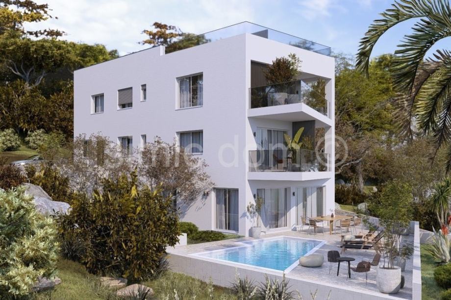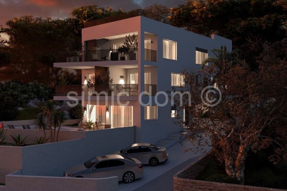 Na prodaju su vrhunski apartmani u prvom redu do mora na Čiovu, od investitora koji gradi izrazito kvalitetne nekretnine s odličnim i modernim dizajnom. Zgrada se nalazi na najatraktivnijem području i mirnoj lokaciji odmah uz tirkizno plavo more i predivnu plažu. Dva apartmana nalaze se na prvom katu, južne su orijentacije i svaki ima 69 m2 podne površine. Sastoje se od hodnika, dvije spavaće sobe, kupaonice, te kuhinje s blagovaonicom i dnevnog boravka iz kojega se izlazi na natkrivenu terasu s predivnim pogledom na more i dalmatinske otoke. Svi apartmani će biti vrhunski opremljeni, podno grijanje će biti provedeno kroz cijeli apartman, sve sobe klimatizirane, aluminijska stolarija, vrhunska keramika i sanitarije, a zgrada će imati i video nadzor. U sklopu okućnice zgrade bit će uređena parkirna mjesta te lijepa mediteranska vegetacija. Ovo je vrhunska nekretnina čija će vrijednost uvijek biti na visokoj razini i u kojoj će vlasnici sigurno uživati. U blizini se nalaze svi sadržaji, a zračna luka udaljena je samo 10 km.