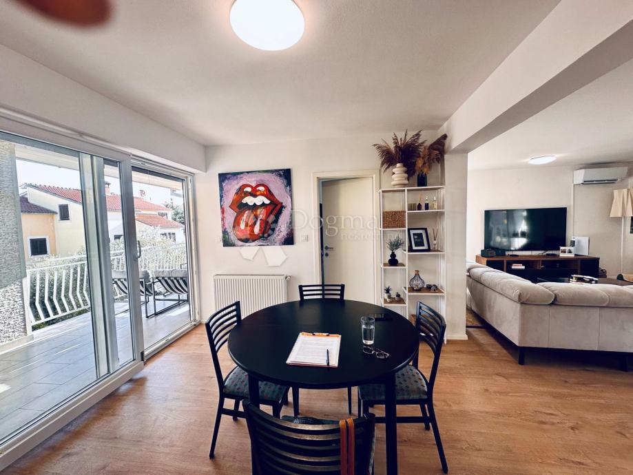Prostrani dnevni boravak s izlazom na prekrasnu terasu koja nudi pogled na okolinu, kuhinja s blagovaonicom s izlazom na dodatnu terasu, jedna spavaća soba i moderna kupaonica.