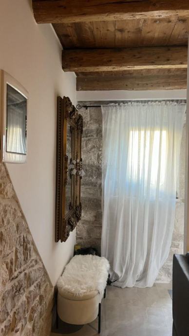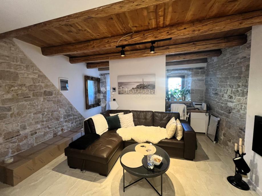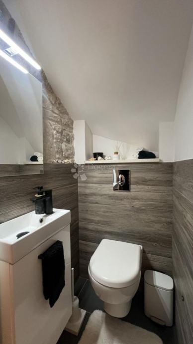 Na katu se nalaze dvije udobne spavaće sobe, idealne za opuštanje i odmor, kao i prostrana kupaonica s modernim sanitarijama. Za dodatnu praktičnost i estetski dojam, stan ima automatsku rasvjetu na stepenicama, koja olakšava kretanje noću.