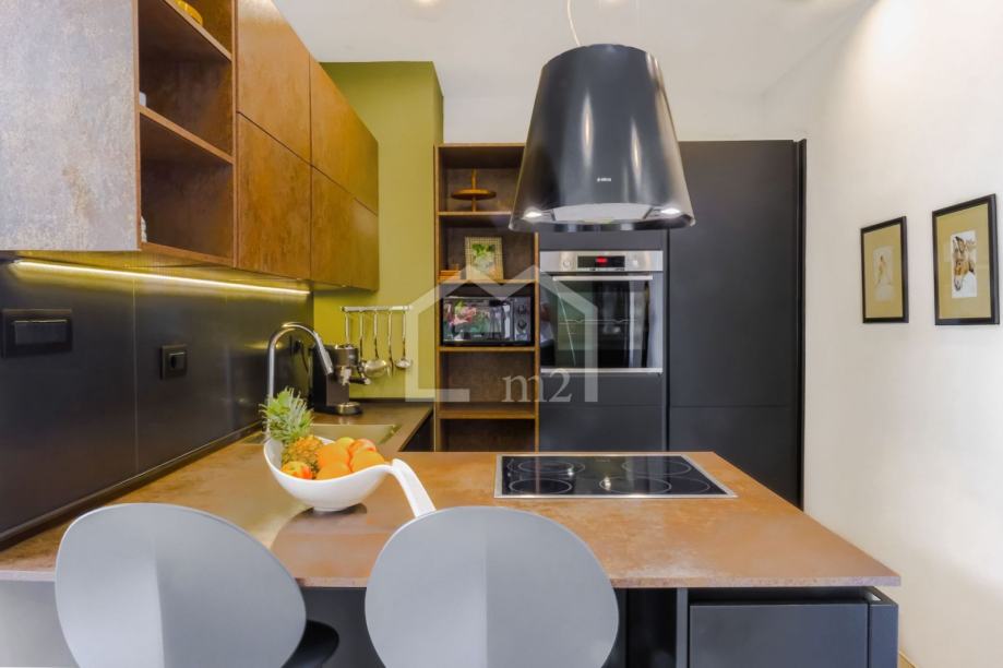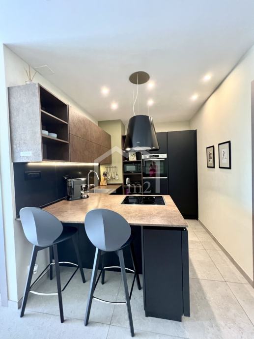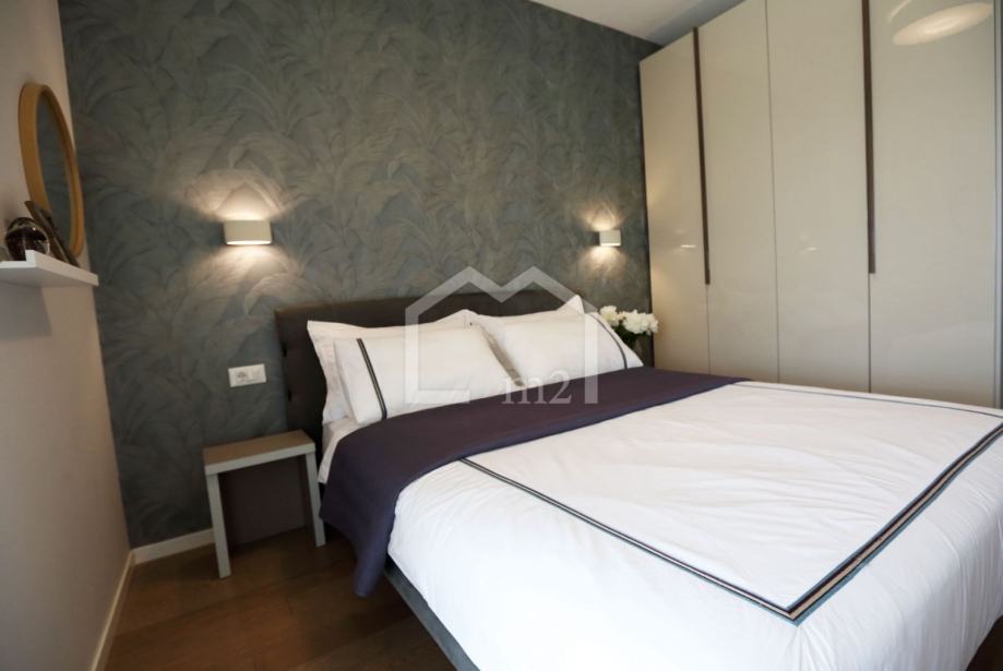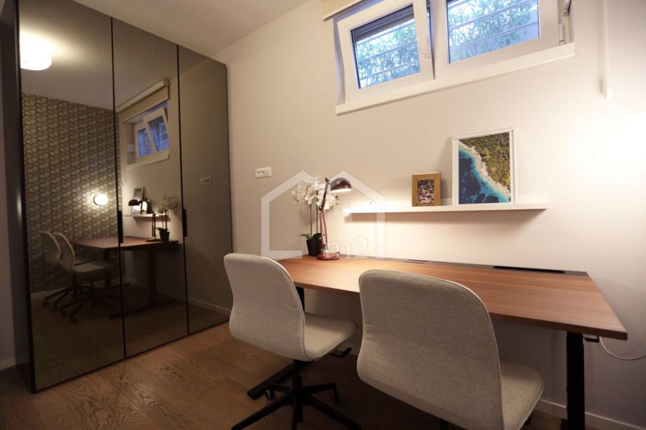 Stanu pripada i ostava u prizemlju zgrade velicine 3,45 m2, te jedno parkirno mjesto u garaži objekta. Interijer je opremljen visoko kvalitetnim namjestajem i sanitarijama vrhunskih proizvođača.