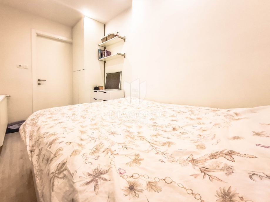 Stan je smješten na četvrtom katu uredne i dobro održavane zgrade, a odlikuje ga prostran i svijetao dnevni boravak spojen s modernom kuhinjom, stvarajući ugodan i funkcionalan životni prostor. Uz to, stan sadrži udobnu spavaću sobu te vrhunski opremljenu, elegantnu kupaonicu.