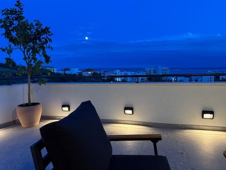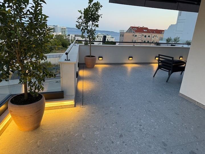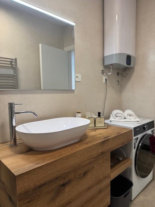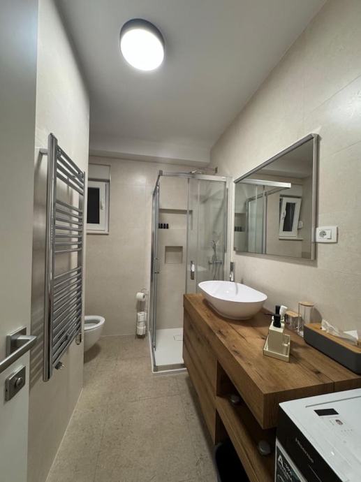 We are mediating in the long-term rental of a beautiful modern and completely new two-bedroom apartment located in a new building in Žnjan. So, it is a first move-in, the apartment has a large terrace of 90m2 with a jacuzzi. 53m2 of interior space where there are two bedrooms, a bathroom, a hallway, a kitchen with a dining area and a living room from which you can exit to a beautiful large terrace with a sea view. Each room has air conditioning and television, as well as the living room. The apartment also has underfloor heating and a secured garage parking space. It is available for move-in on 01.07.2025. for the whole year... The monthly rent is €1500. CONTACT: 0915616295 (ANDREA)